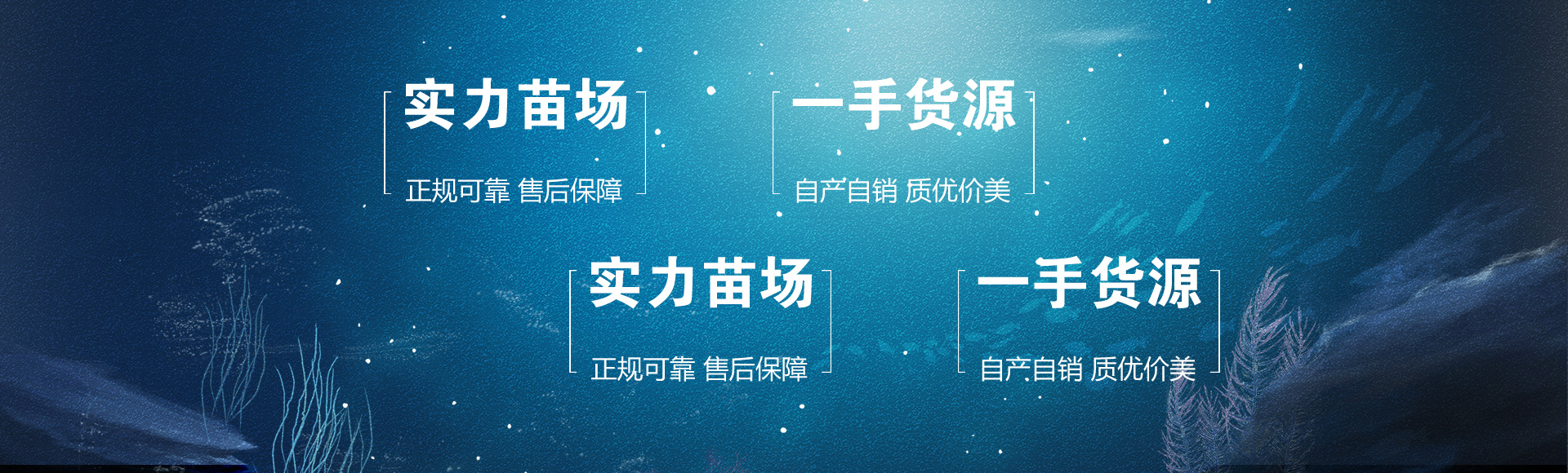 主要经营品种:四大家鱼苗、罗非鱼苗、桂鱼苗、鲫鱼苗、大口鲶鱼苗、本地塘鲺苗、鲫鱼苗、埃及塘鲺、七星鱼、白鲢苗、黑皖苗、黄连苗、青竹皖苗 等等! 渔场理念:本渔场本着“客户至上、质量为本”的原则、建立健全严苛的质量标准检验体系、诚实经营、力求做到更好!展望未来、我们将一如既往的探索、不断的努力、精心培育种苗、为您提供更加完美、更加高效、更加诚信的优质服务、我们将与您携手共进、共创新的辉煌!